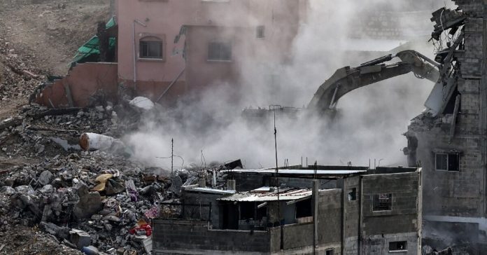 Israeli military bulldozers and cranes tore through the structures early Wednesday, sending thick plumes of dust into the air, an AFP journalist reported. Many residents watched from a distance.