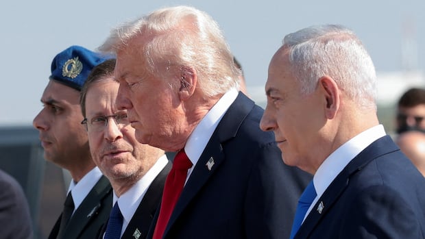 Just before Trump arrived at Israel’s Knesset, parliamentary staff handed out red MAGA-style hats reading, “Trump the peace president.”